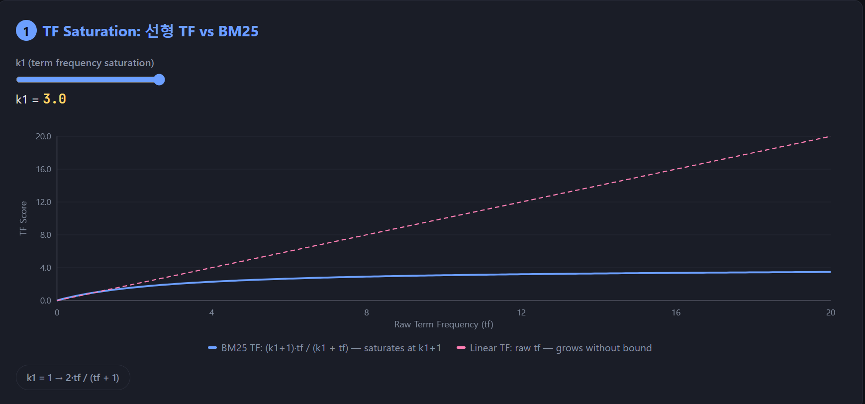 score = (k_1 + 1) * tf / (k_1 + tf)